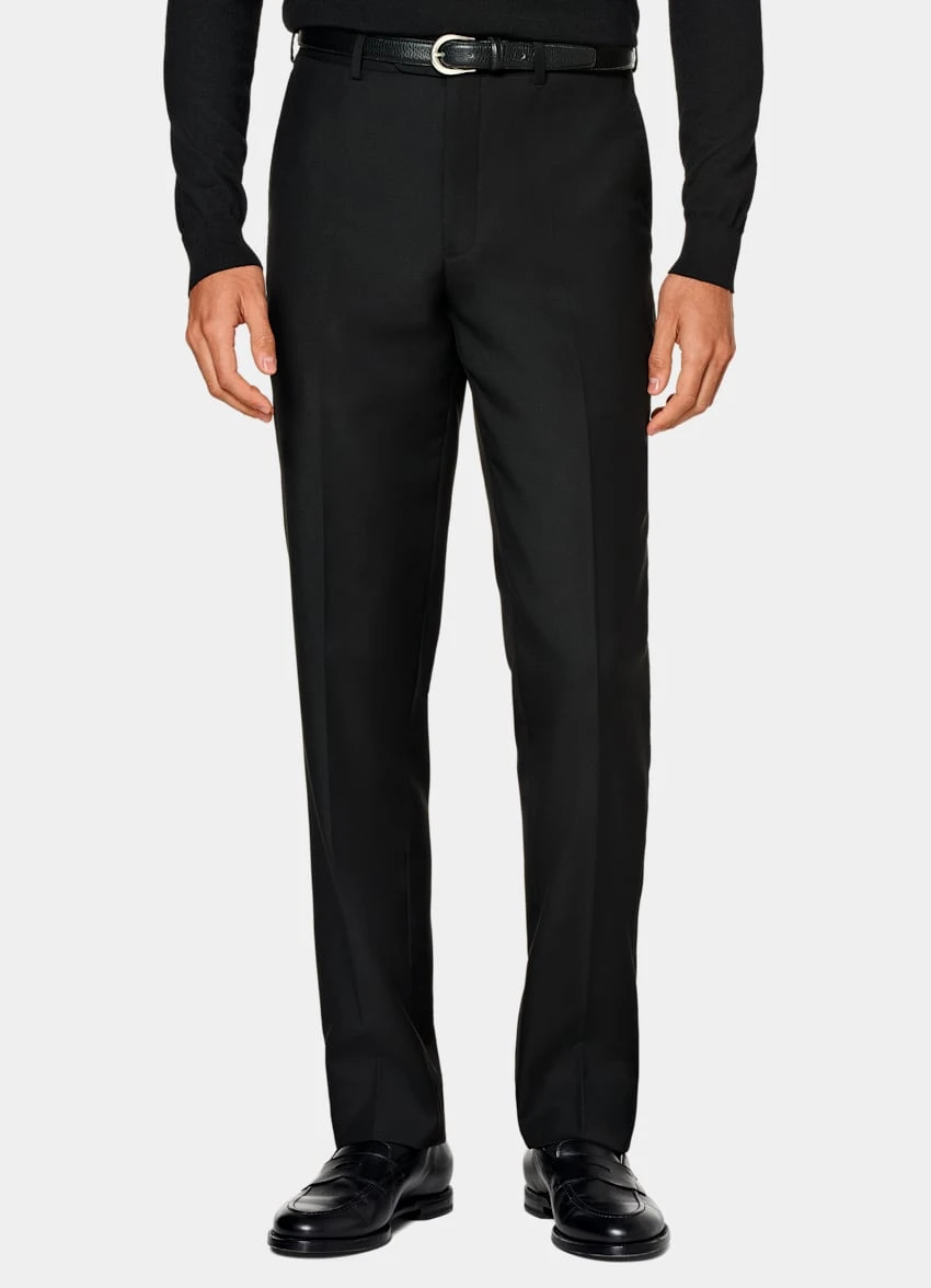 - These mid-rise pants are tailored to a slim fit, cut straight through the leg, and slightly tapered at the hem