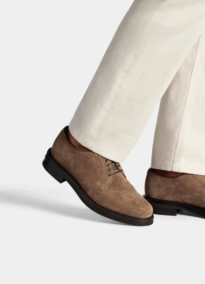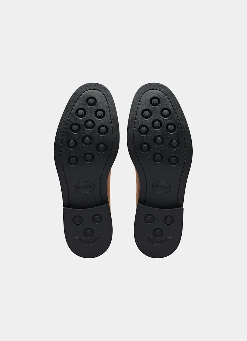 - Use a suede eraser (suede block) with light pressure for any persistent stains, after what use a bristle/crepe brush to restore the evenness of the suede nap.