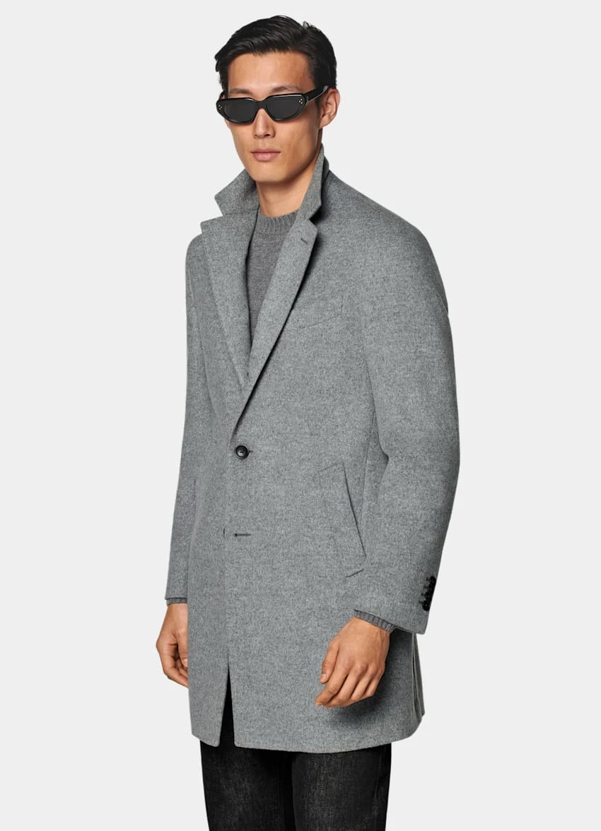 - This coat is tailored to a regular fit and cut to a mid-thigh length