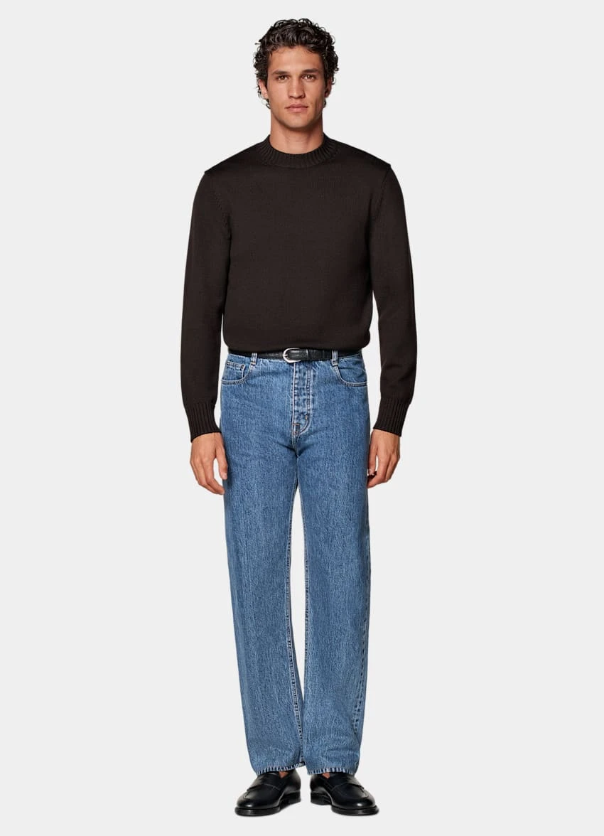 - These high-rise jeans are tailored to a regular fit and cut straight through the leg and hem