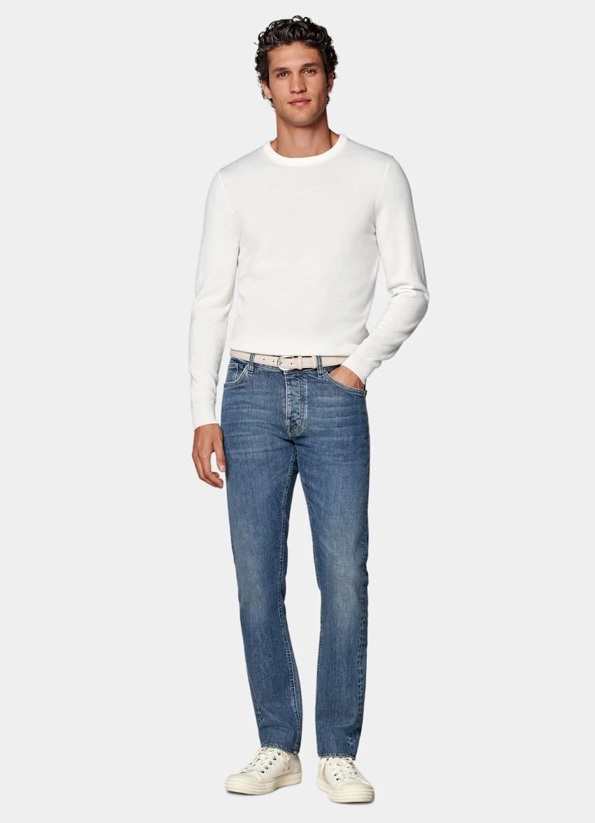 - These mid-rise jeans are tailored to a slim fit and tapered through the leg and hem