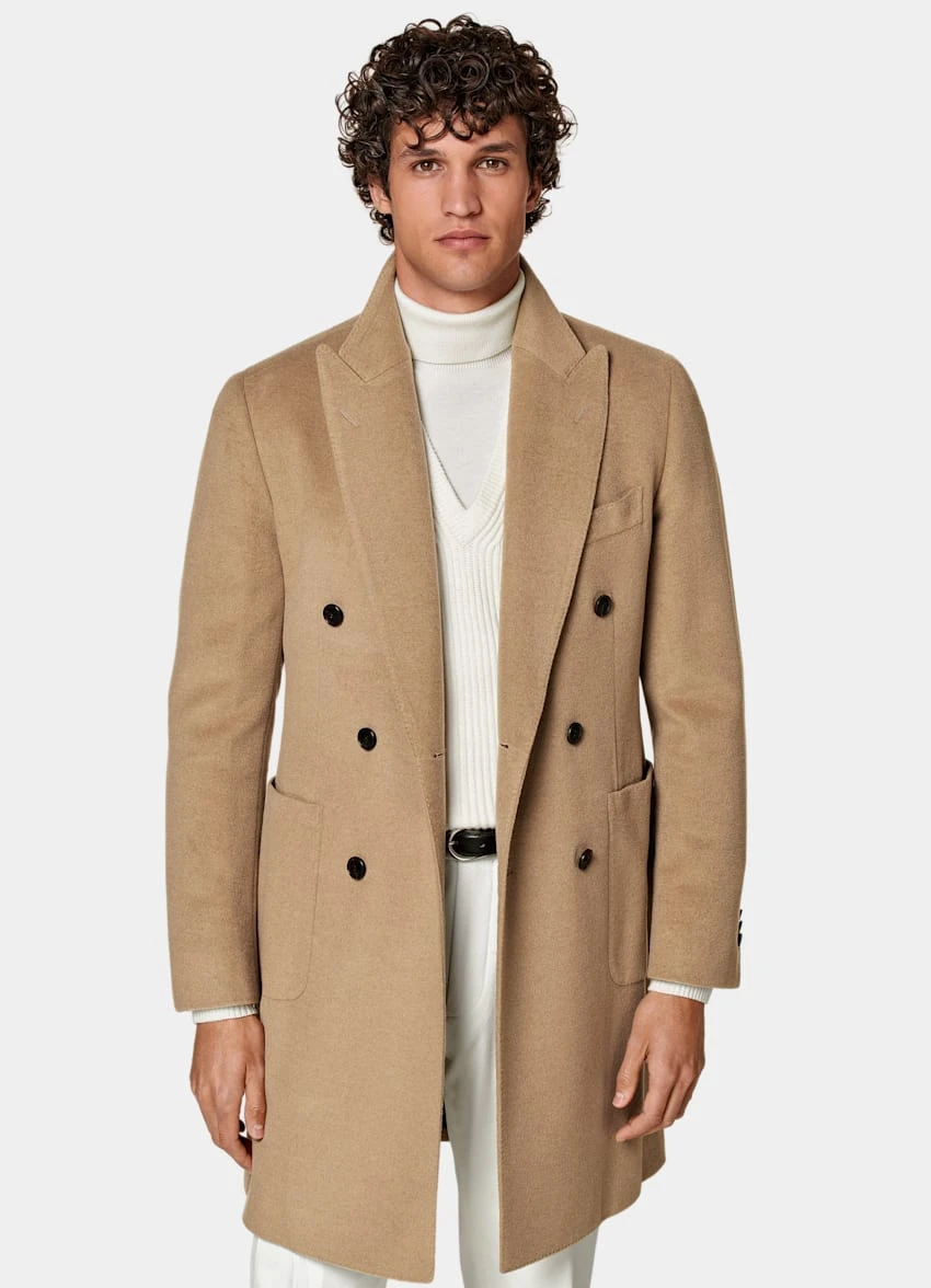 - This coat is tailored to a regular fit and cut to a mid-thigh length