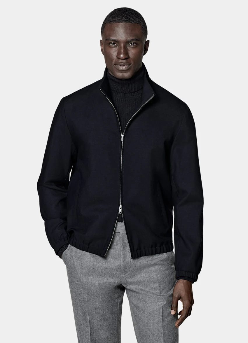 - This casual jacket is tailored to a regular fit with a tapered elasticated hem and cut to a hip-length
