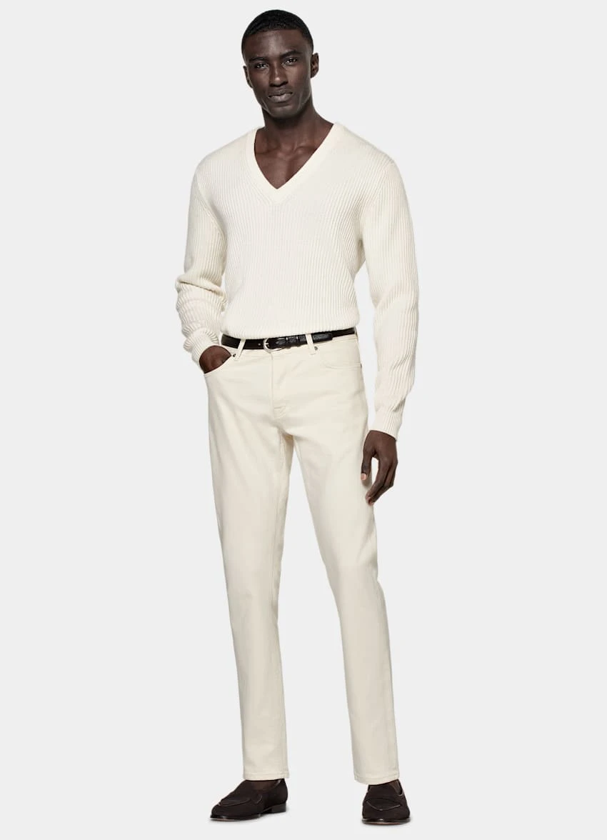 - These mid-rise jeans are tailored to a slim fit and tapered through the leg and hem