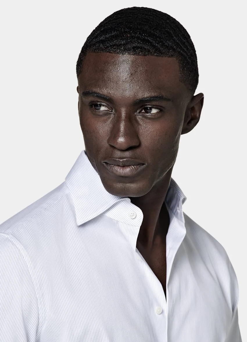 - Slim fit. Semi-tailored fit with a slightly tapered waist